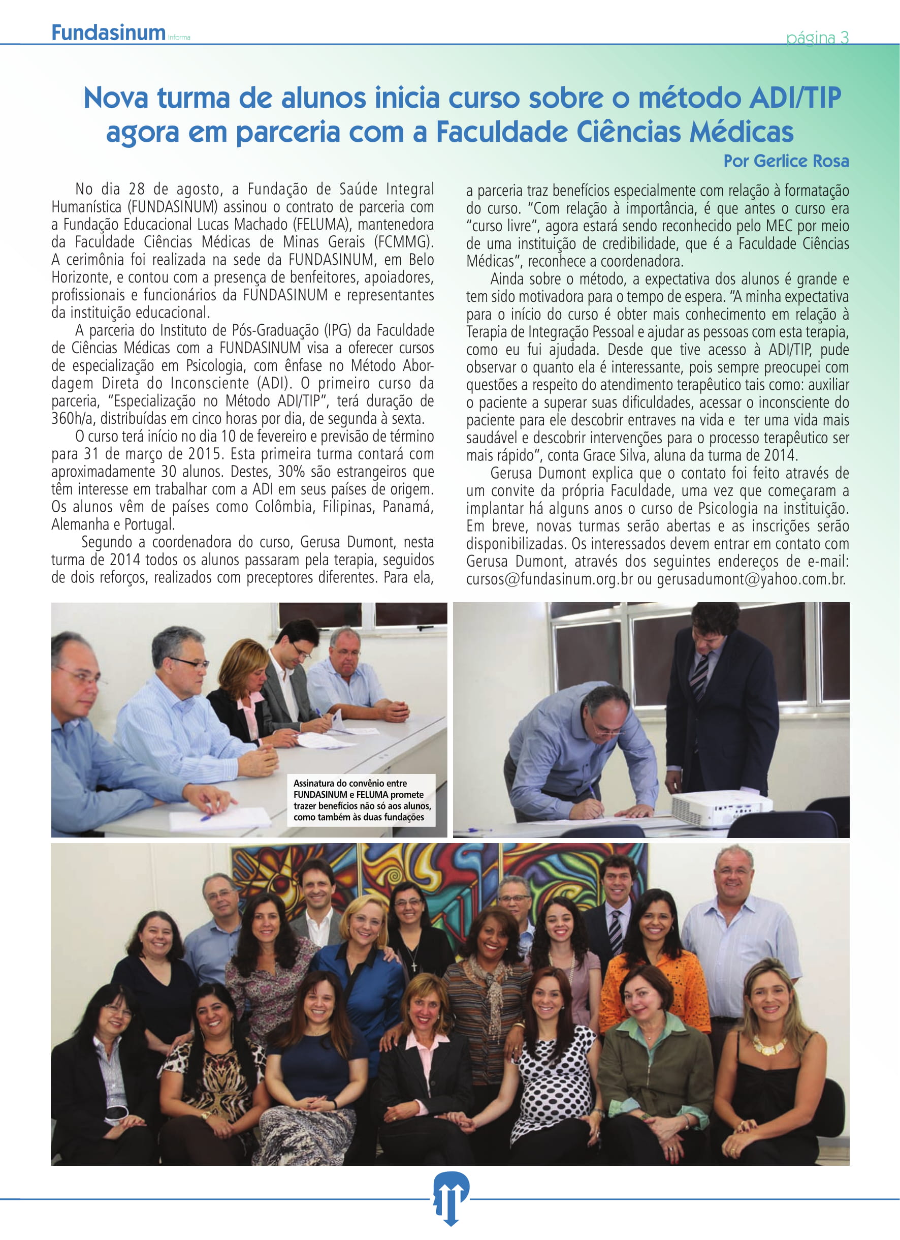 PARTICIPAÇÕES NO JORNAL FUNDASINUM INFORMA